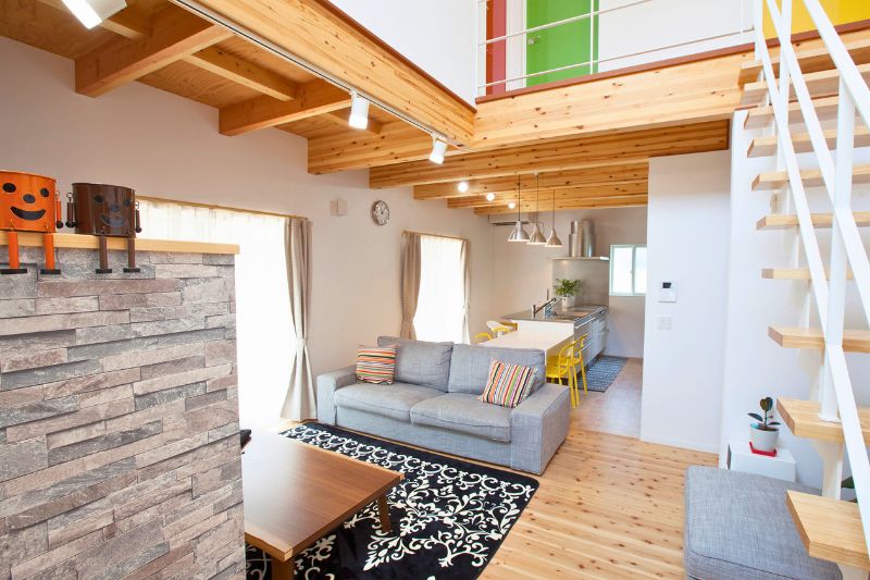 3. 「見せる梁」と「吹き抜け」で、開放感とぬくもりを両立