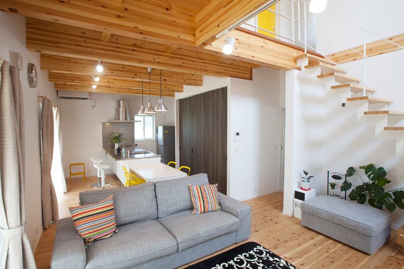 3. 「見せる梁」と「吹き抜け」で、開放感とぬくもりを両立