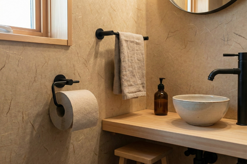 ゲストが使ったときに「おっ、素敵だな」と思われるだけでなく、何よりあなた自身が、毎日使うたびに「やっぱりこの壁紙にしてよかった」と思えること。 その小さな満足感の積み重ねが、長く続く暮らしの豊かさにつながっていきます。