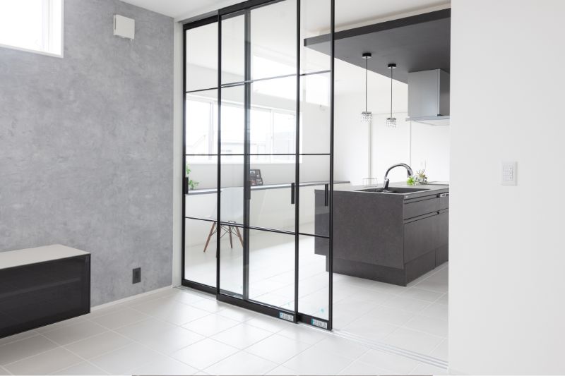 また、**「窓枠」や「室内窓」**も重要です。 黒いアイアンフレームなど、シャープな素材を取り入れることで、空間全体がカフェやホテルのような洗練された印象になります。